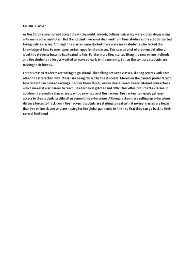 Facebook Twitter Pinterest Linkedin Tumblr Reddit Email. previous post, online classes essay. next post. Related Posts. May 28, The Online classes essay of the COVID Pandemic on the Domestic Violence Questionnaire Survey May 28, Why We are Relying too much on Computers May 1, Capitalism in Whole Online classes essay Market USA April 19, My Leadership Journey Essay April 19, Pros and Cons of Single-Payer and Employer-Based Insurance April 15, Factors Shaping The Politics of The Middle East April 15, Fear and Anxiety Level Among HCWs During COVID Leave a Comment Cancel Reply.